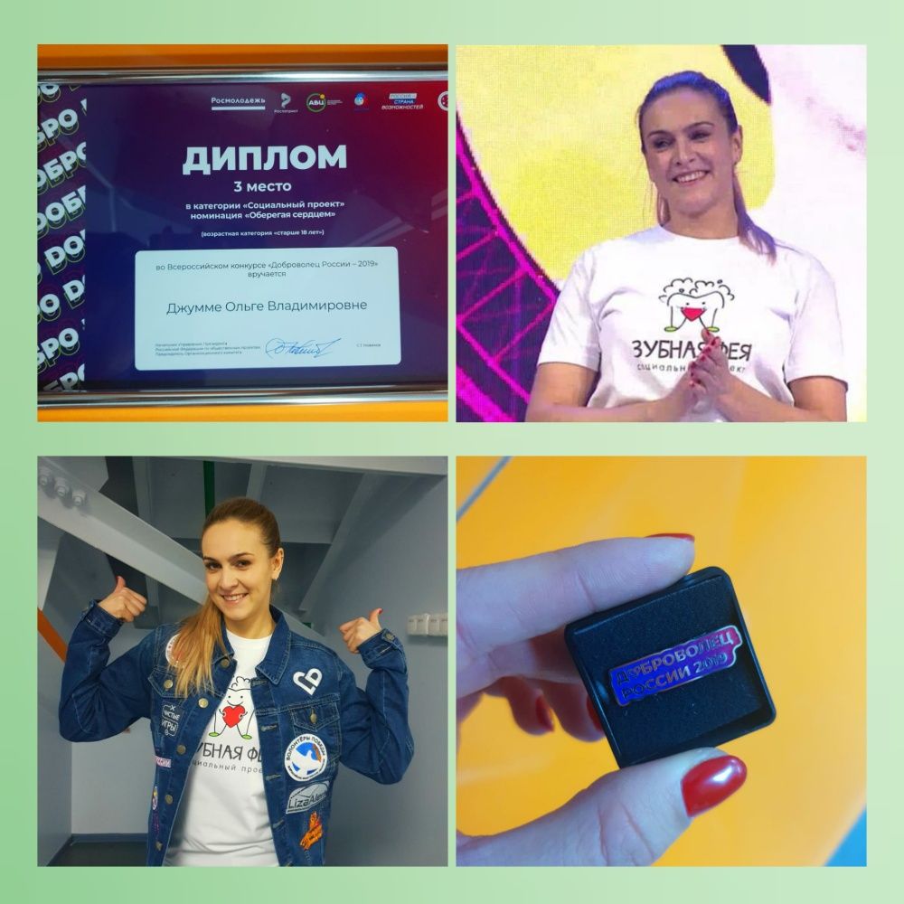 В декабре 2019 года проект «Зубная фея» Джумма О.В.занял почетное призовое III место в номинации «Оберегая сердцем» на Всероссийском конкурсе «Добровольцы России -2019»
